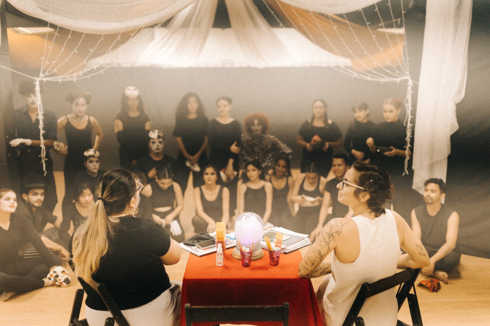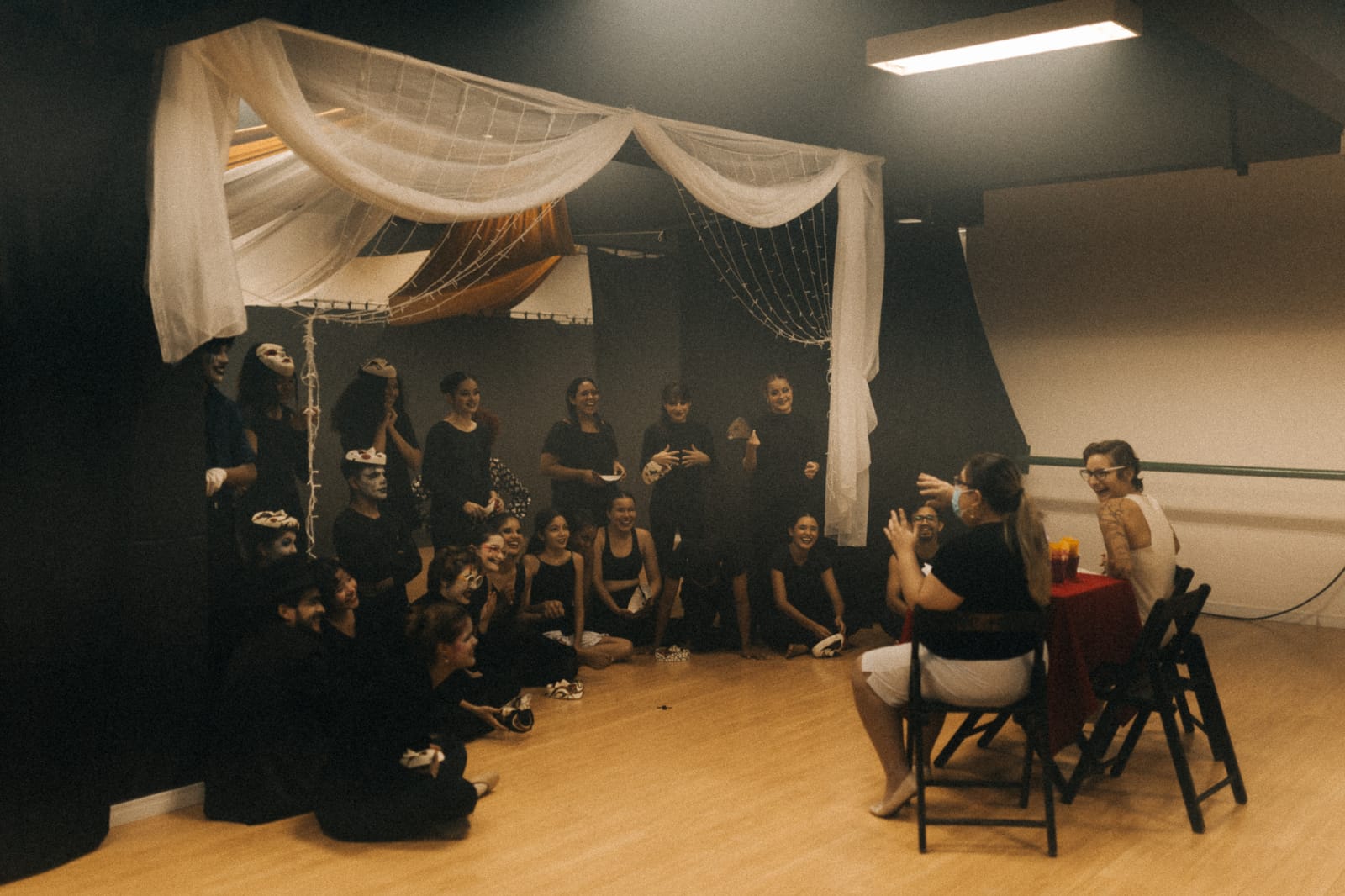 Diálogo pós-espetáculo com o coletivos dos alunosartistas do espetáculo "Oníricus" e as professoras Raíssa Costa e Carmem Arce. (2022)